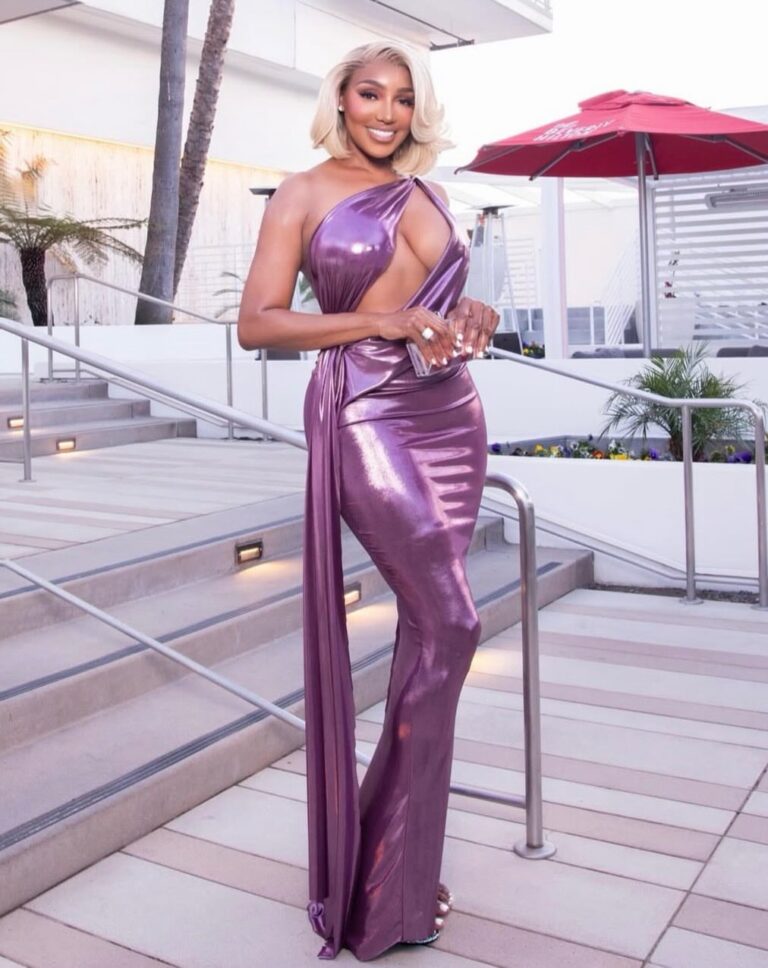Nene Leakes Hits Oscars 2026 Parties in Purple Metallic Michael Costello Gown